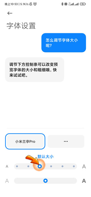 4、最后点击页面下方的“大小条”,即可选择调整字体大小。
