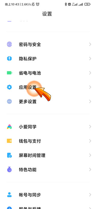 2、进入设置页面后,找到并点击“应用设置”选项。