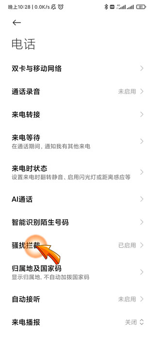 4、最后点击关闭“骚扰拦截”右侧的开关按钮即可。