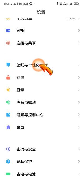 2、进入设置页面后,点击“壁纸与个性化”选项。