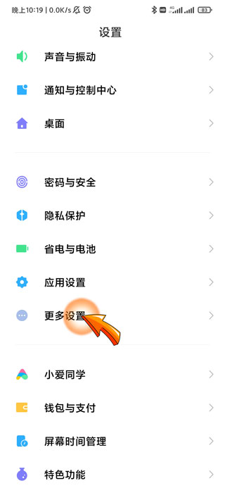 2、进入设置页面后,找到并点击“更多设置”选项。