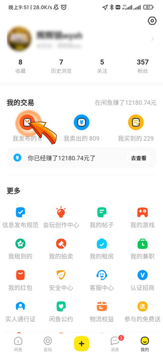 2、进入我的页面后,点击我的交易下方的“我发布的”图标。