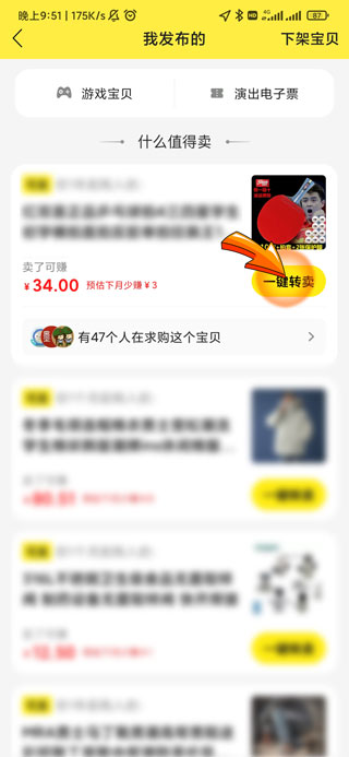 3、最后点击转卖商品订单右下方的“一键转卖”选项即可。