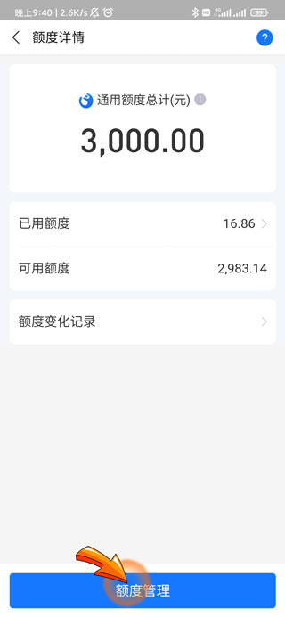 5、再点击额度详情页面底部的“额度管理”选项。