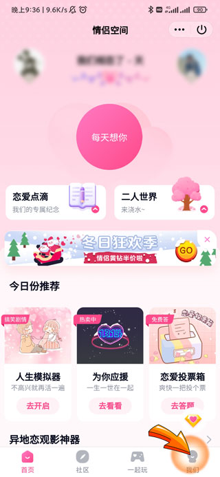 3、进入情侣空间后,点击右下角的“我的”图标。