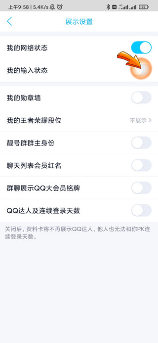 5、最后点击“我的输入状态”右侧的开关按钮,将其关闭即可。