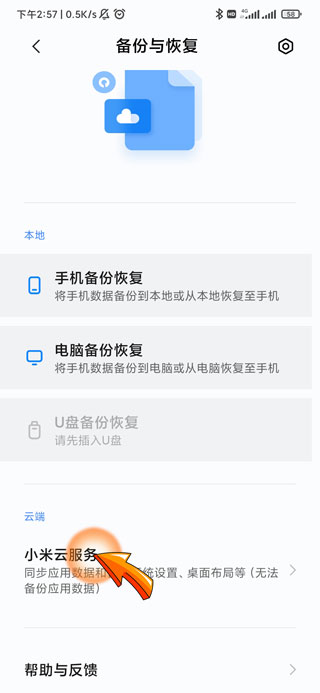 手机同步关掉将无法同步手机上的相关数据,手机关掉同步模式需要点击打开“设置”图标,然后点击“我的设备”选项,之后点击“备份与恢复”选项,再点击云端下方的“小米云服务”选项,最后点击关闭“快速同步模式”即可。
