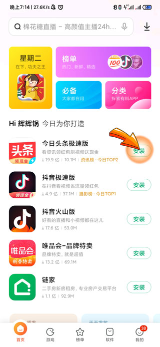 2、进入页面后找到需要下载的应用,点击右侧的“安装”选项即可进行下载。