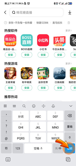 3、或者在页面上方的输入栏中输入应用名称,然后点击右下角搜索选项即可进行下载。