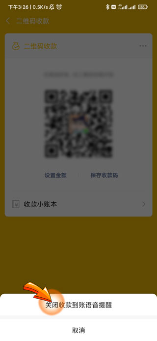 5、最后点击页面下方弹出窗口中的“关闭收款到账语音提醒”选项即可关闭微信收款提示音。