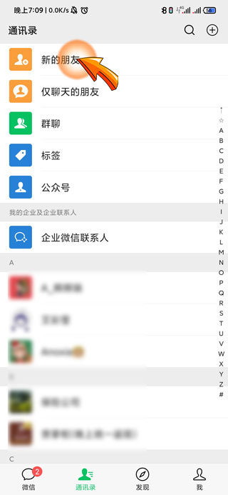 1、微信添加加已过期的人首先需要打开微信APP,点击页面上方中的“新的朋友”选项。