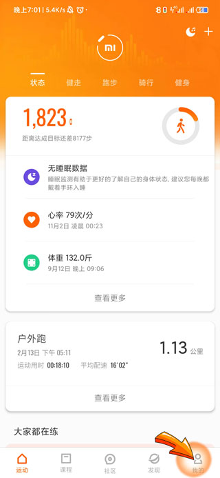 1、手机连接小米手环首先需要点击打开桌面上的“小米运动”选项。
