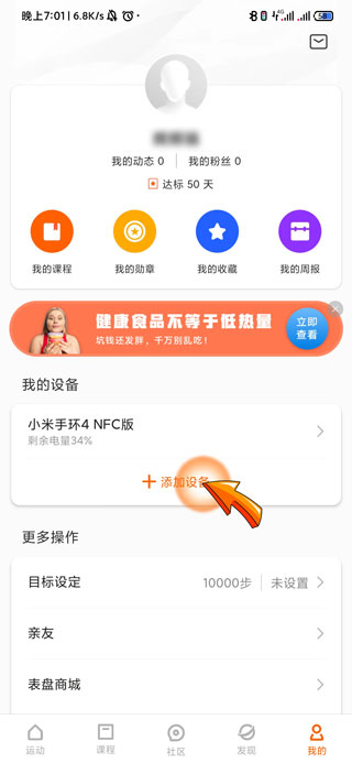 3、进入我的页面中,点击中部的“添加设备”选项。