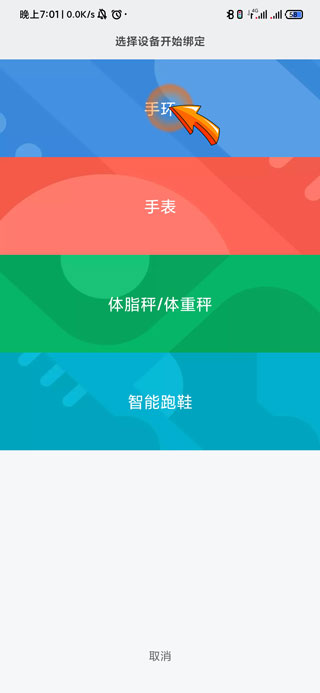 4、最后点击页面顶部的“手环”选项进行搜索连接。