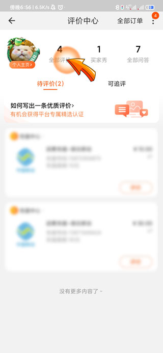 3、进入评价中心后,点击头像右侧的“全部评价”选项。