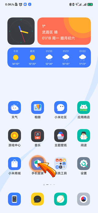 1、小米手机微信悬浮窗开启首先需要打开桌面上的“手机管家”图标。