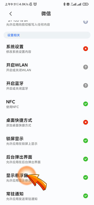5、将页面下滑到底部,点击开启“显示悬浮窗”选项即可。