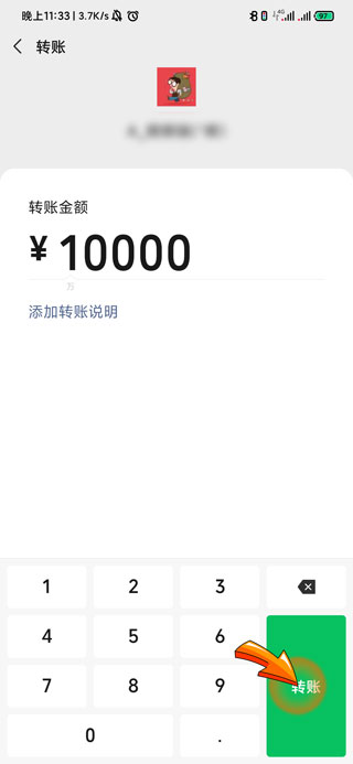 4、输入转账金额后,点击页面右下角的“转账”选项即可。
