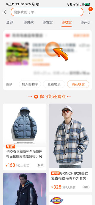 2、然后点击我的订单下方的“待收货”选项。