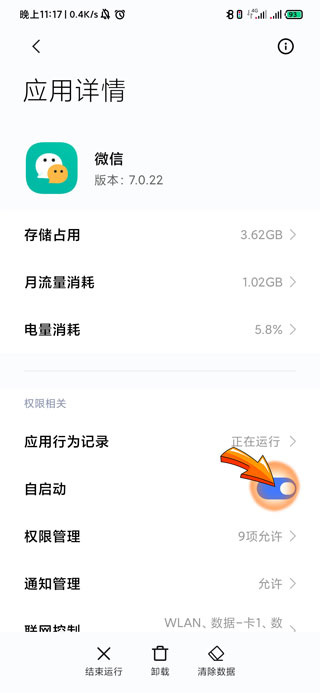 微信开启自启动权限的步骤