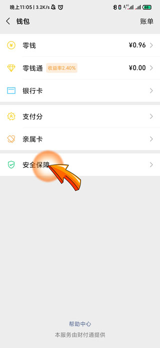 4、之后点击钱包页面底部的“安全保障”选项。