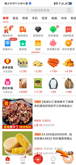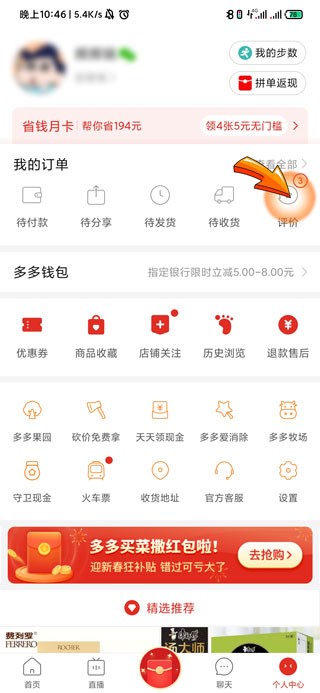 1、拼多多申请退款则首先需要打开拼多多APP,点击首页右下角“个人中心”选项。
