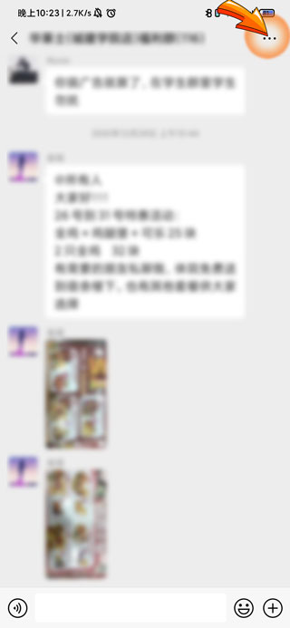 2、进入微信群聊页面后,点击页面右上角的“三点”符号。