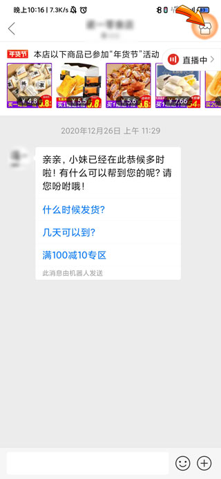 3、进入聊天页面后,点击页面右上角的“店铺”图标。