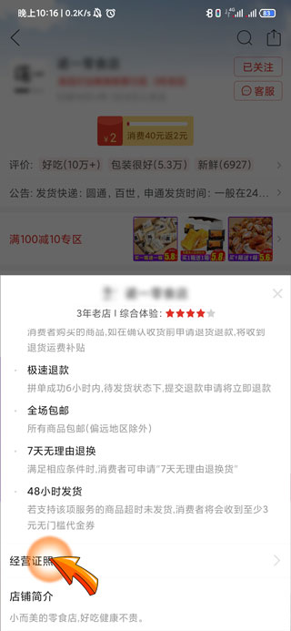 5、此时页面底部会弹出一个窗口,点击其中的“经营证照”即可查看店铺地址。