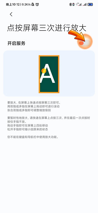 6、在放大功能页面中,点击上方的“点击屏幕两次进行放大”选项。