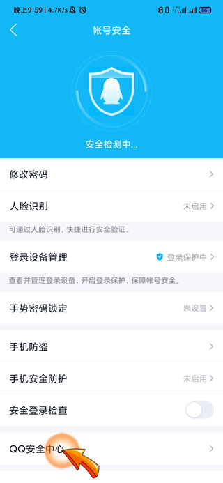 4、之后点击账号安全页面下方的“QQ安全中心”选项。