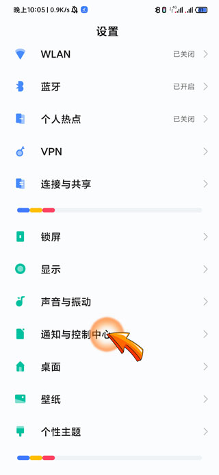 2、进入设置页面后,找到并点击“通知与控制中心”选项。