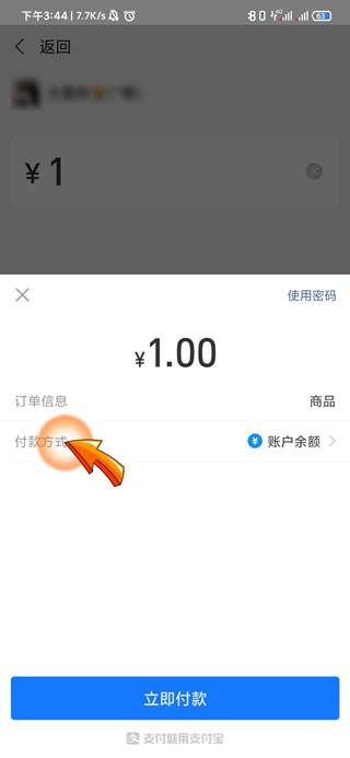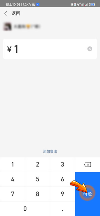 2、输入付款金额后,点击页面右下角的“付款”选项。