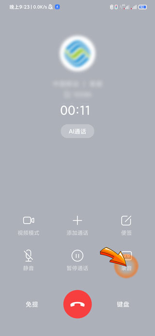 4、最后点击功能页面右下方的“录音”选项即可进行通话录音。