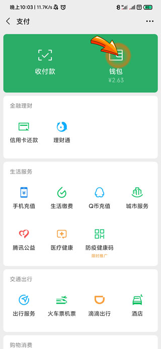 3、之后点击支付页面中的“钱包”图标。