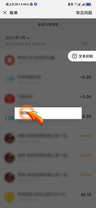 5、长按需要删除的“账单记录”,此时页面会弹出一个窗口。