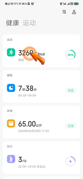 2、进入健康页面后,点击页面上方的“步数”数字。