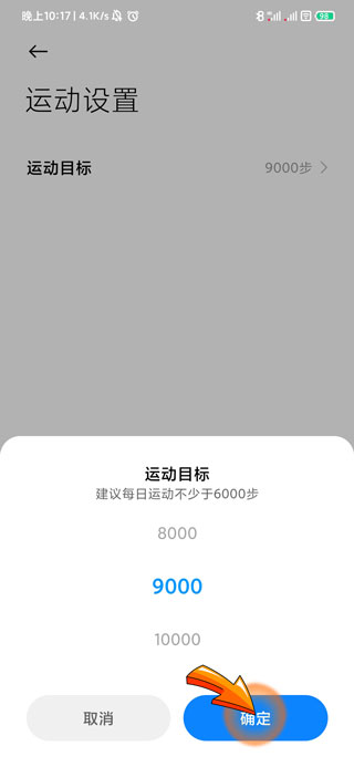 6、调整好每日运动目标步数后,点击页面右下角的“确定”选项即可。