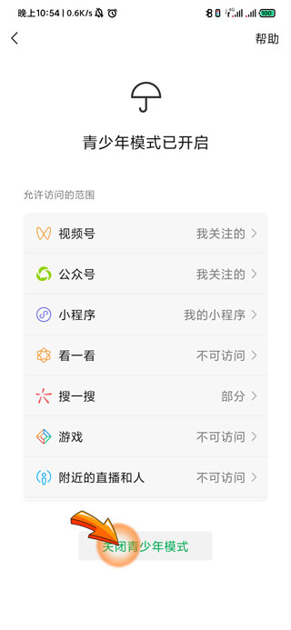 手机没有自带的青少年模式,部分应用中会有青少年模式选项,例如微信关闭青少年模式需要打开微信APP,点击页面右下方的“我”的图标,然后点击“设置”选项,再点击“青少年模式”,验证密码后,点击“关闭青少年模式”即可。