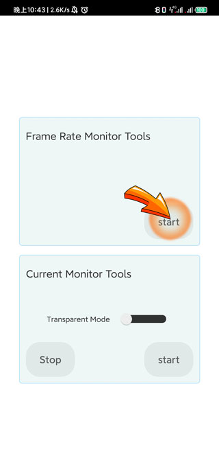 5、最后点击页面中的“start”选项即可查看手机帧数。