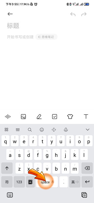 1、手机的空格键需要打开输入法页面查找,点击可以编写的界面,使输入法弹出。