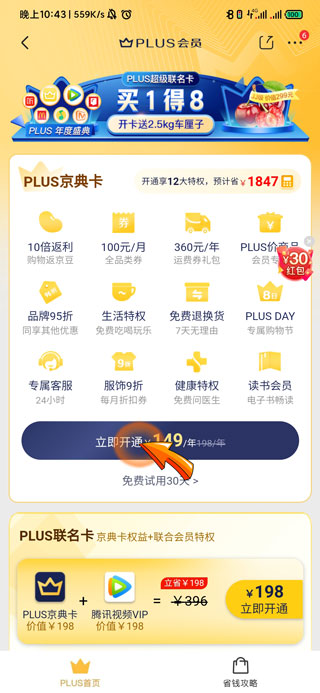 京东信用分需要开通plus会员才可以查看,开通plus会员首先需要打开京东APP,点击页面右下角的“我的”图标,然后点击页面上方的“plus会员”选项,进入页面后点击“立即开通”选项,完成支付后即可开通。
