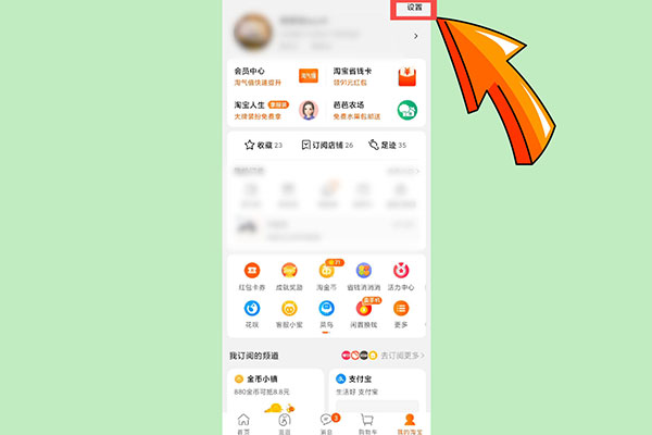 2、进入我的淘宝页面后,点击页面右上方的“设置”选项。