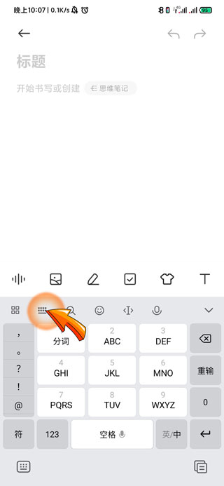 1、手机打开手写功能首先需要将手机的输入法界面打开,点击输入框左上方的“第二个”图标。