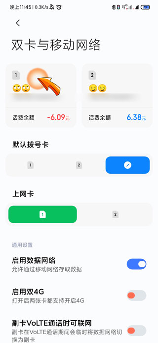 3、然后点击页面上方的“sim卡”图标。