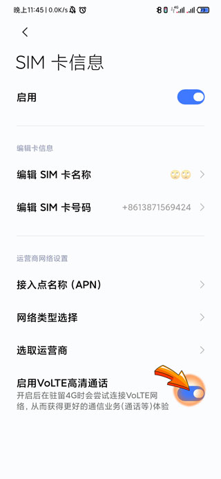 4、最后点击关闭“启用volte高清通话”右侧的开关,即可将手机的hd关闭。