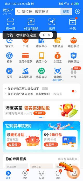 1、支付宝开通花呗首先需要打开支付宝APP,然后点击首页右下角的“我的”图标。