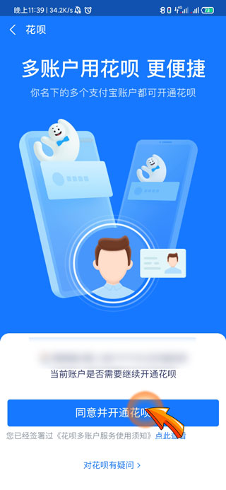 3、进入花呗页面后,点击页面下方的“同意并开通花呗”选项即可完成开通。