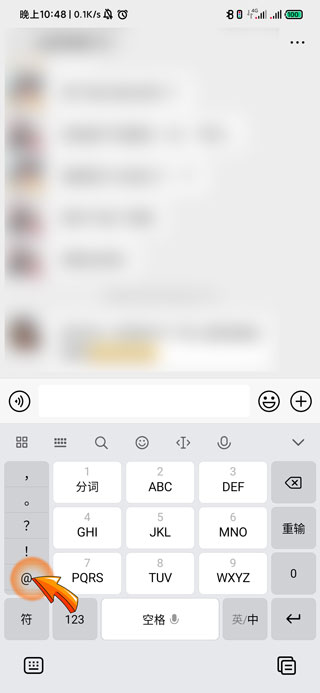2、进入群聊页面后,点击输入栏中的“@”符号。