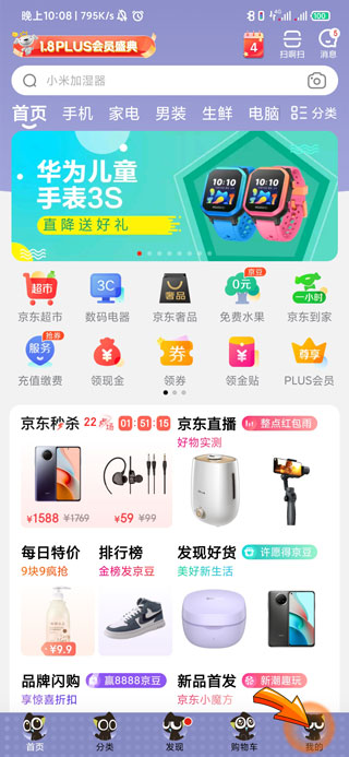 1、手机京东收货地址查看首先需要打开京东APP,点击首页右下角的“我的”图标。